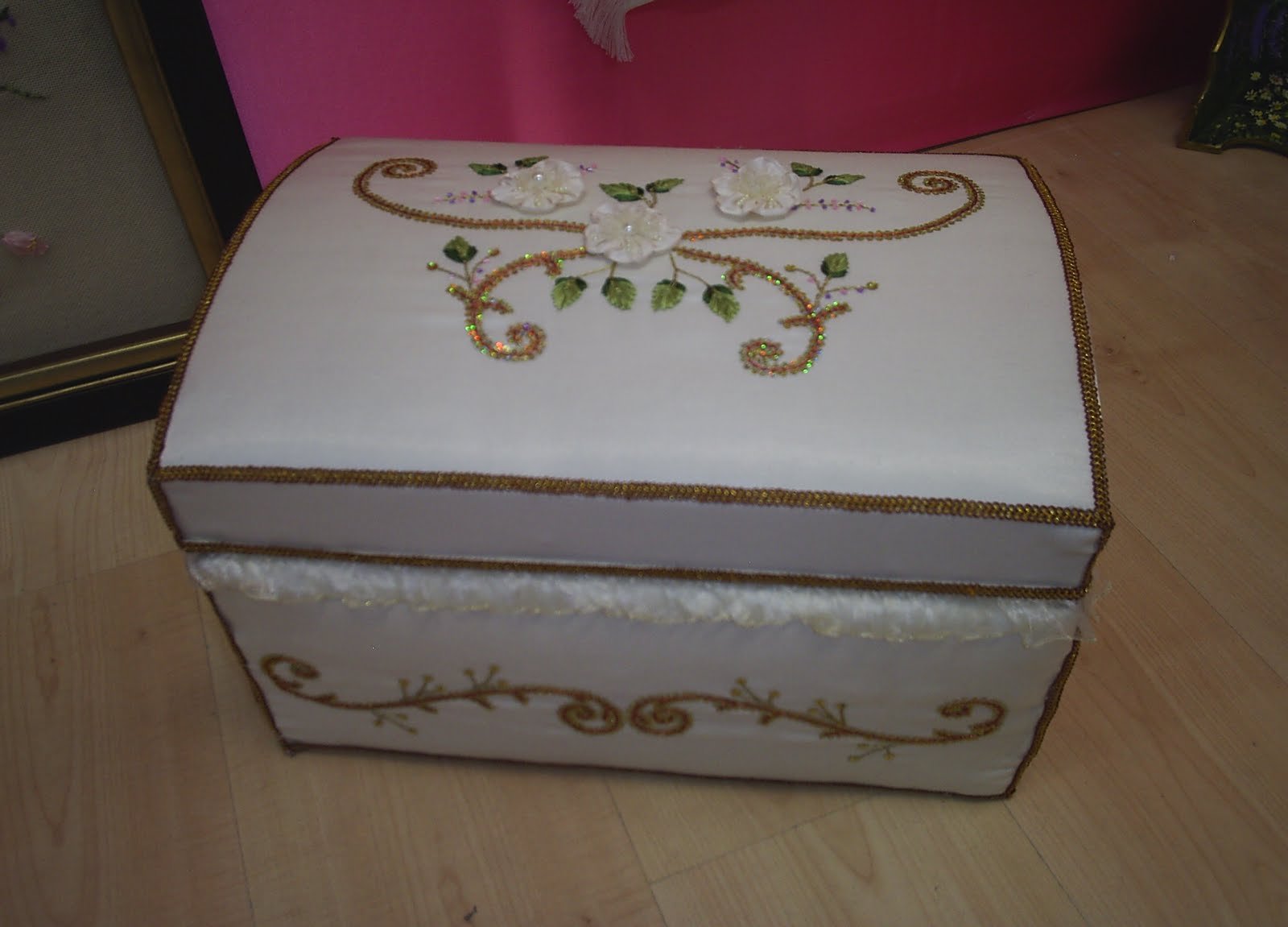 Osmek sergisinde çok beğendiğim kurdele nakışı ile hazırlanmış harika bir nişan takımı .Yastığı,sandığı , bohçası ve havlusu ile gerçekten çok güzeldi yapanların ellerine sağlık 🙂
