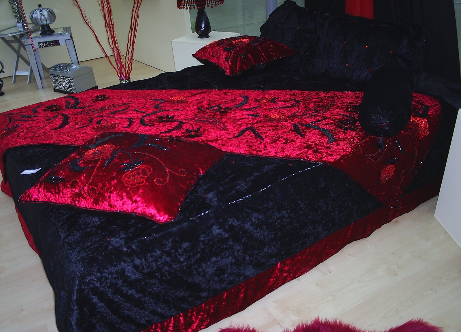 BUSMEK sergisinde kırmızı-siyah çok beğendiğim (kırmızıya bayılırum) çok farklı bir yatak örtüsü .Siyah kadifeden hazırlanan ana örtüsün üzeri ranır şeklinde kırmızı bir parçayla tamamlanmış. Kadifeden kırmızı kumaşın üzerine boncuk işi yapılmış. Ama benim en çok hoşuma giden yatak örtüsünün iki şekilde de kullanılabilir oluşu .İstersen kırmızı parçayı kaldır yinede çok güzel bir yatak örtüsü, Bu yatak örtüsünün de çok hoş abajurları vardı ama ben çekmeyi unutmuşum 🙁