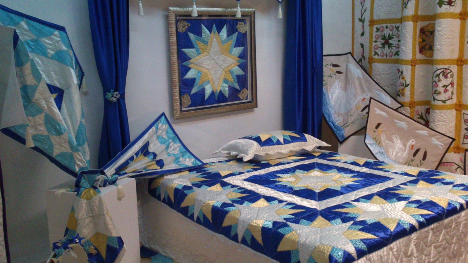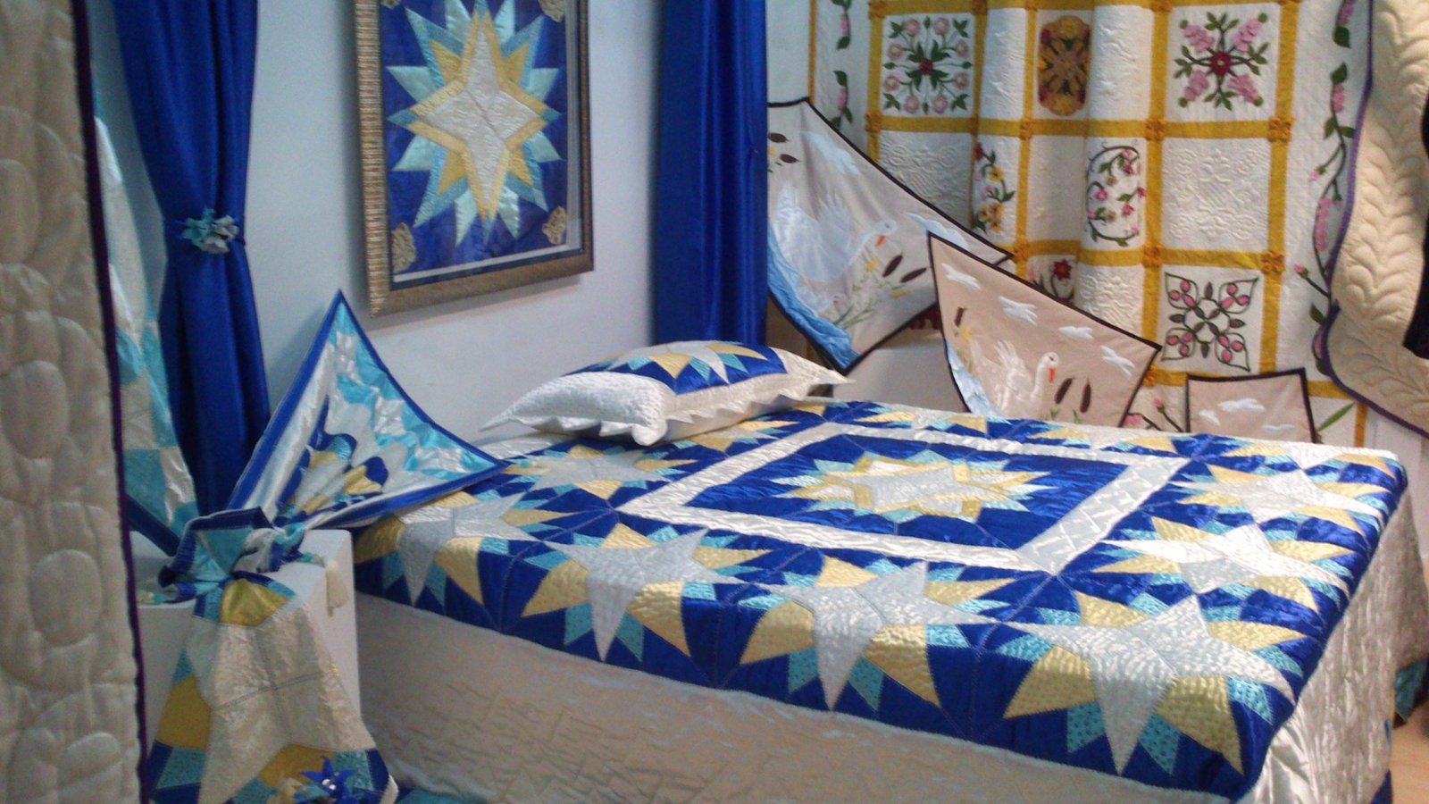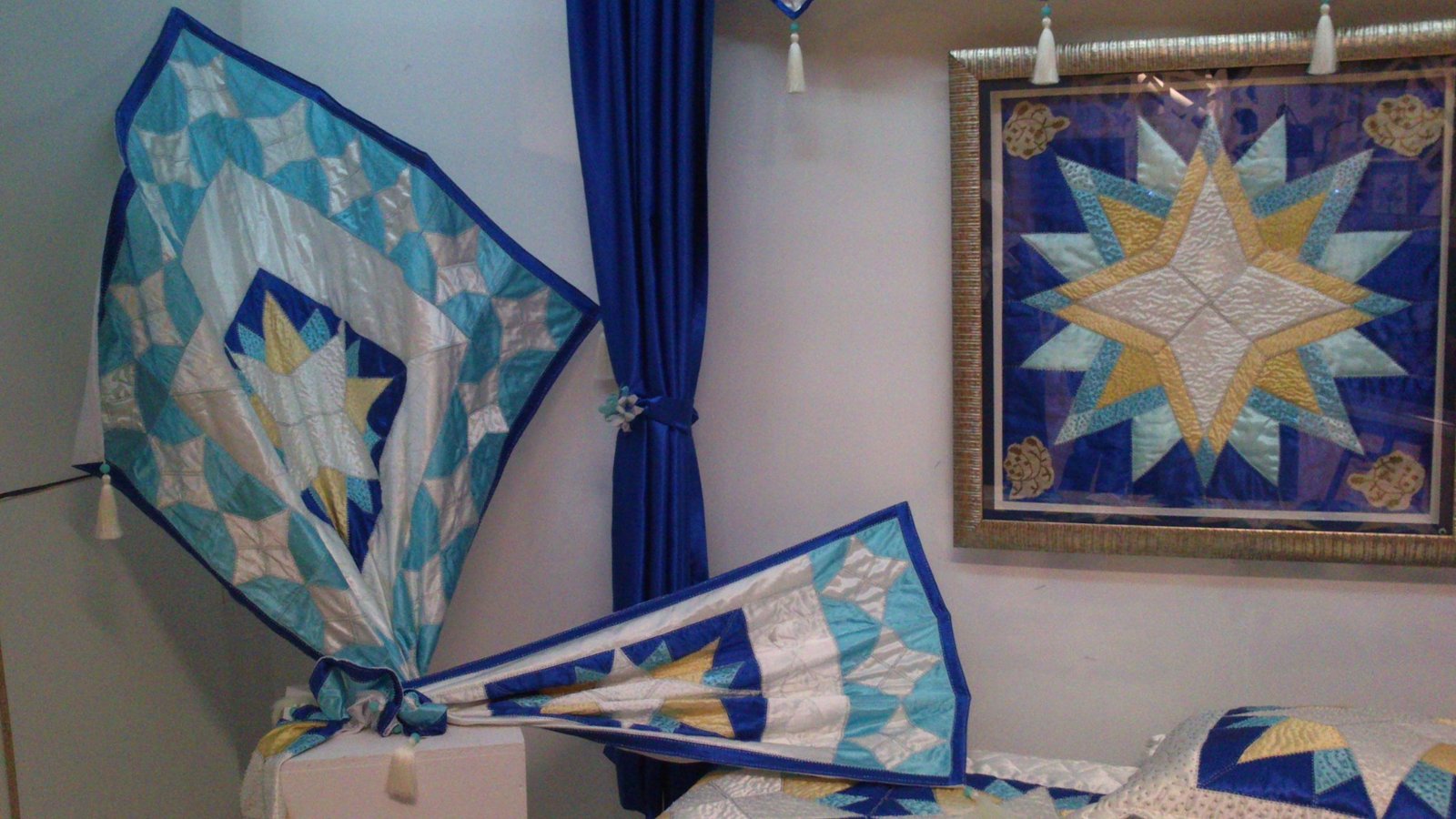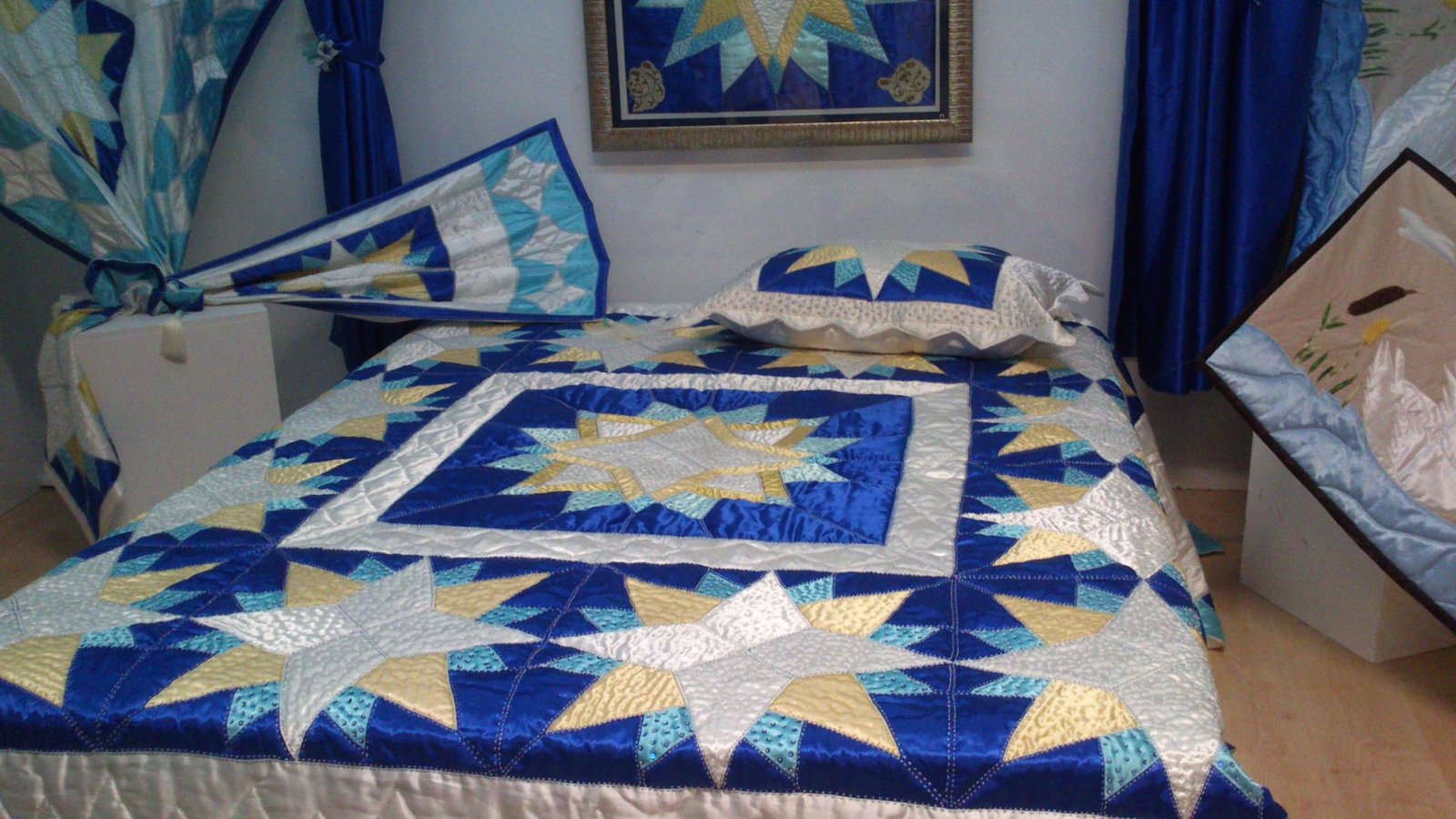 Bu yıl düzenlenen BUSMEK 8. genel sergisinde çektiğim resimlerden bir bölüm. Bu kırkyama patchwork yatak örtüsü takım olarak yapılmış ve rengiyle deseniyle çok hoş olmuş. Yapanın ellerine sağlık çok beğendim iyi günlerde kullansın.
