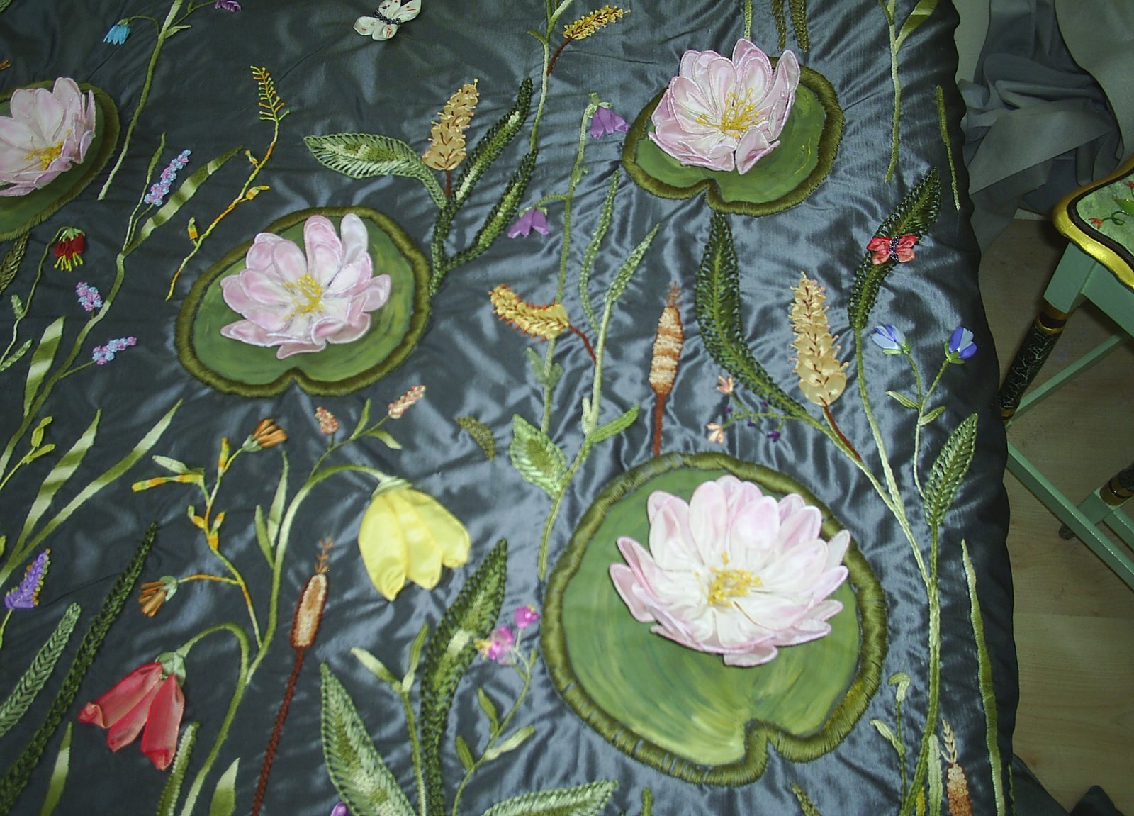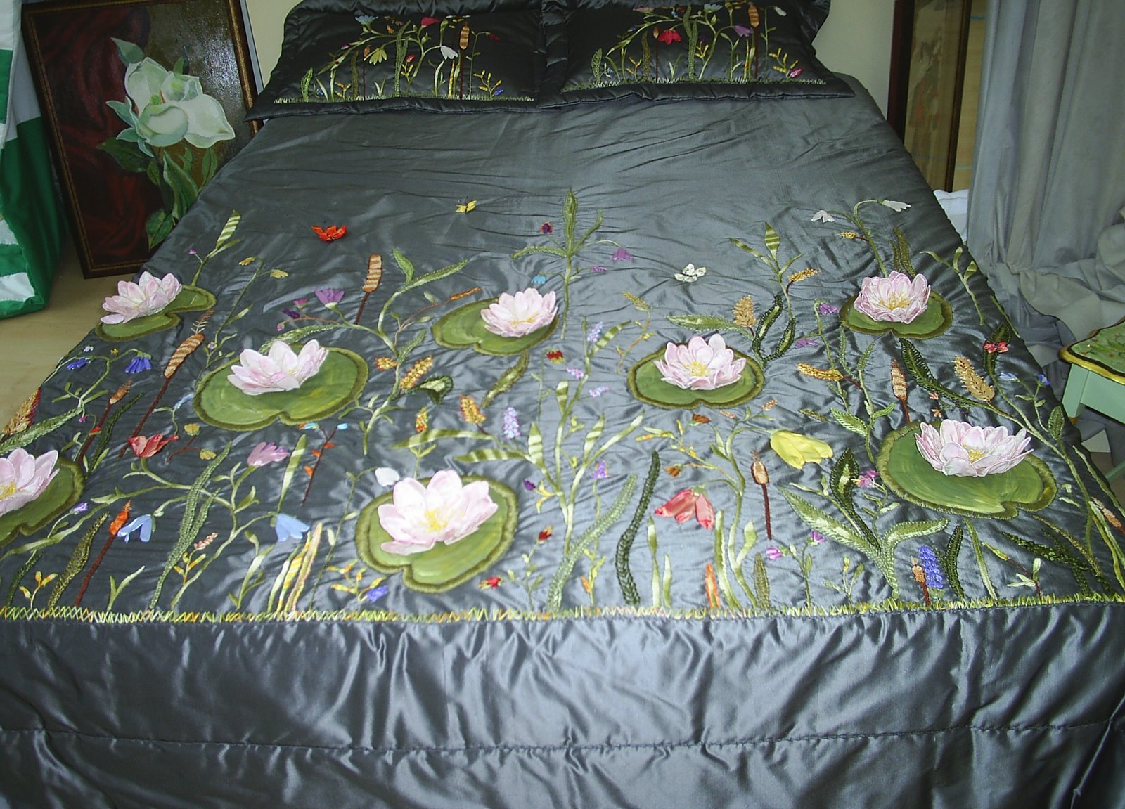 Kurdele nakışı desenleri kullanılarak yapılmış güzel bir yatak örtüsü.Kurdele nakışı nasıl yapılır diyenlere güzel bir örnek.