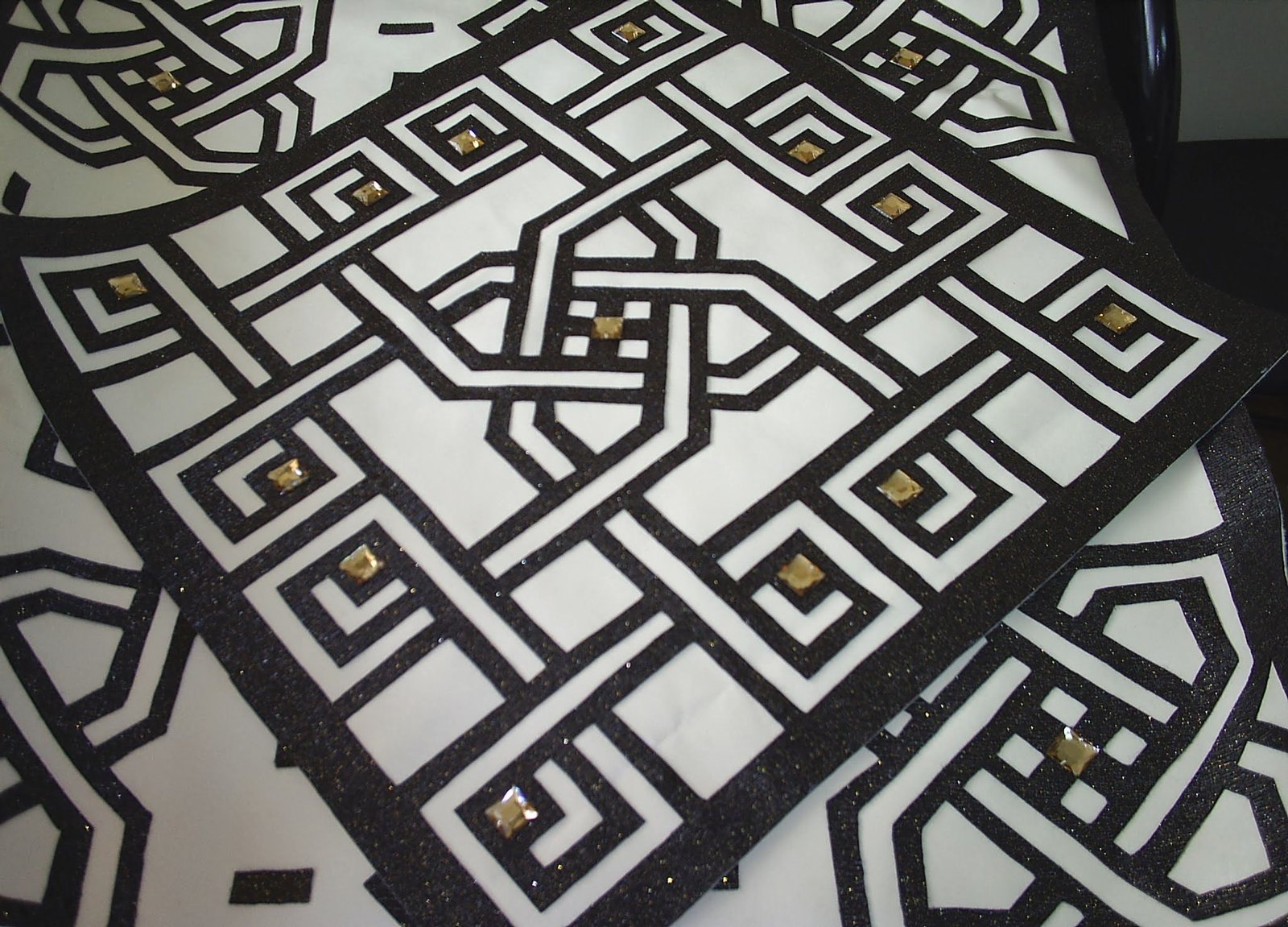 Yapması kolay kullanması bir o kadar zevkli bir çalışma. Deri masa örtüsü, ranır, Amerikan servis vs ne amaçla kullanacağınız size kalmış. Önce istediğimiz ölçülere karar verip iki renk deri kumaş alıyoruz. Deri deri diyorum da, suni deri tabi ki aldığımız 🙂 Sonra deseni oyup çıkardığımız da altta kalacak rengi ayırıp üst olmasını istediğimiz kumaşın tersinden deseni çiziyoruz. Maket bıçağı ile kenarlarından kesip deseni ortaya çıkartıyoruz. Sonrasında üzerine yapıştırıcı sürüp alt için ayırdığımı deriye yapıştırıyoruz. Üzerini taşlar püsküller vs ile süslemek sizin zevkinize kalmış.