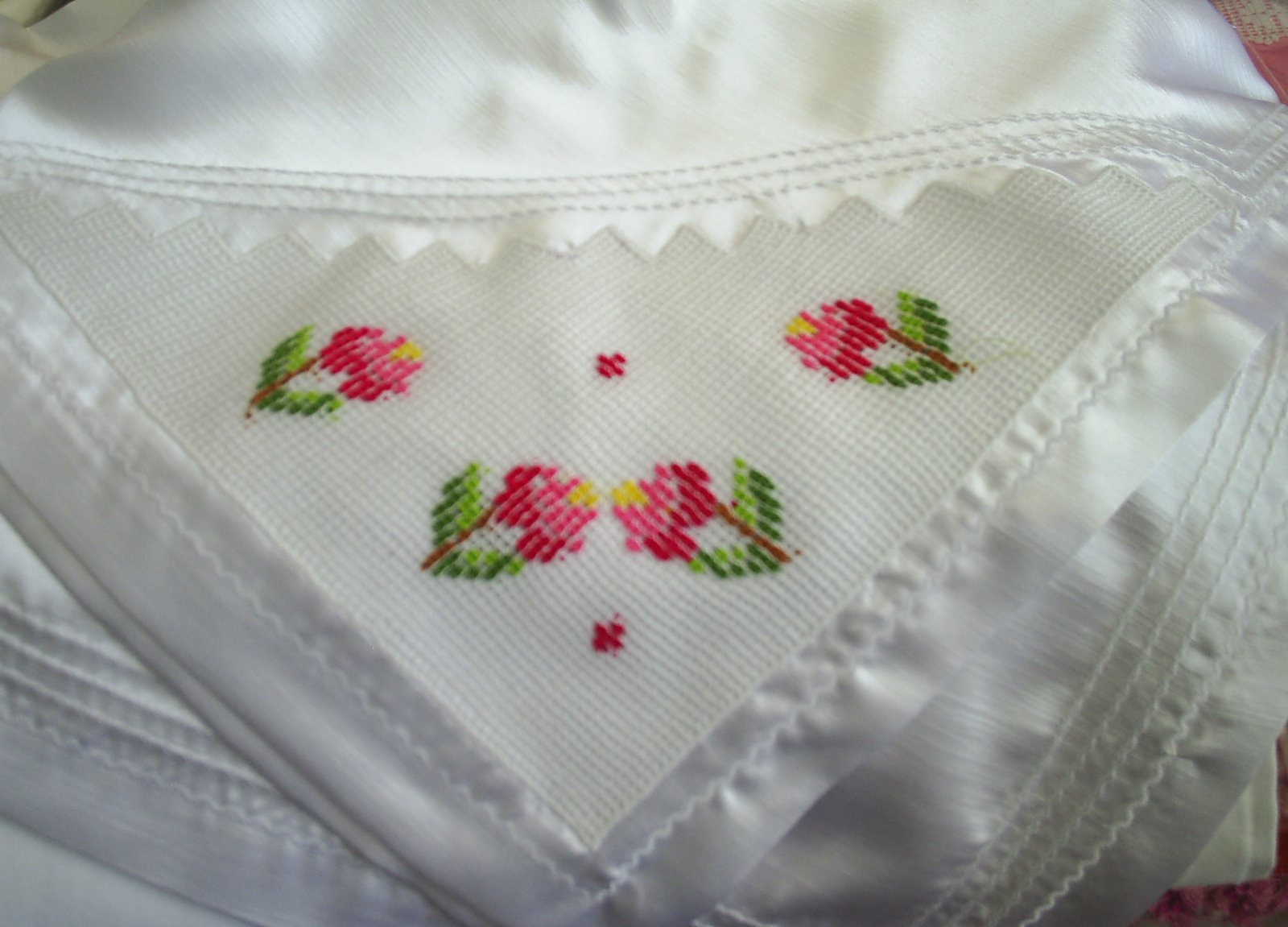 Yine kafes dantel üzerine işlenmiş havlu ve bohçadan oluşan hoş bir takım.