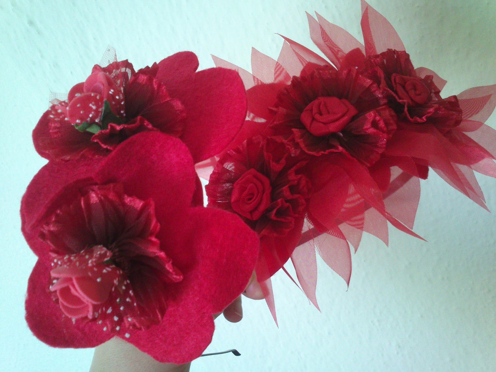 Bu taçları da çok sevdiğim bir arkadaşımın gelini için yaptım. Daha haberleri yok, umarım hediyelerimi beğenirler. Bizim zamanımızda kırmızı kurdeleler vardı başımız bağlardık. Şimdiki genç anneler için özellikle çeşit çeşit lohusa taçları yapılıyor. Bende hazır keçelerle uğraşıyorken birkaç lohusa tacı yapayım hediye diye düşündüm:)