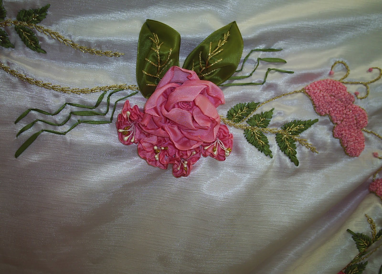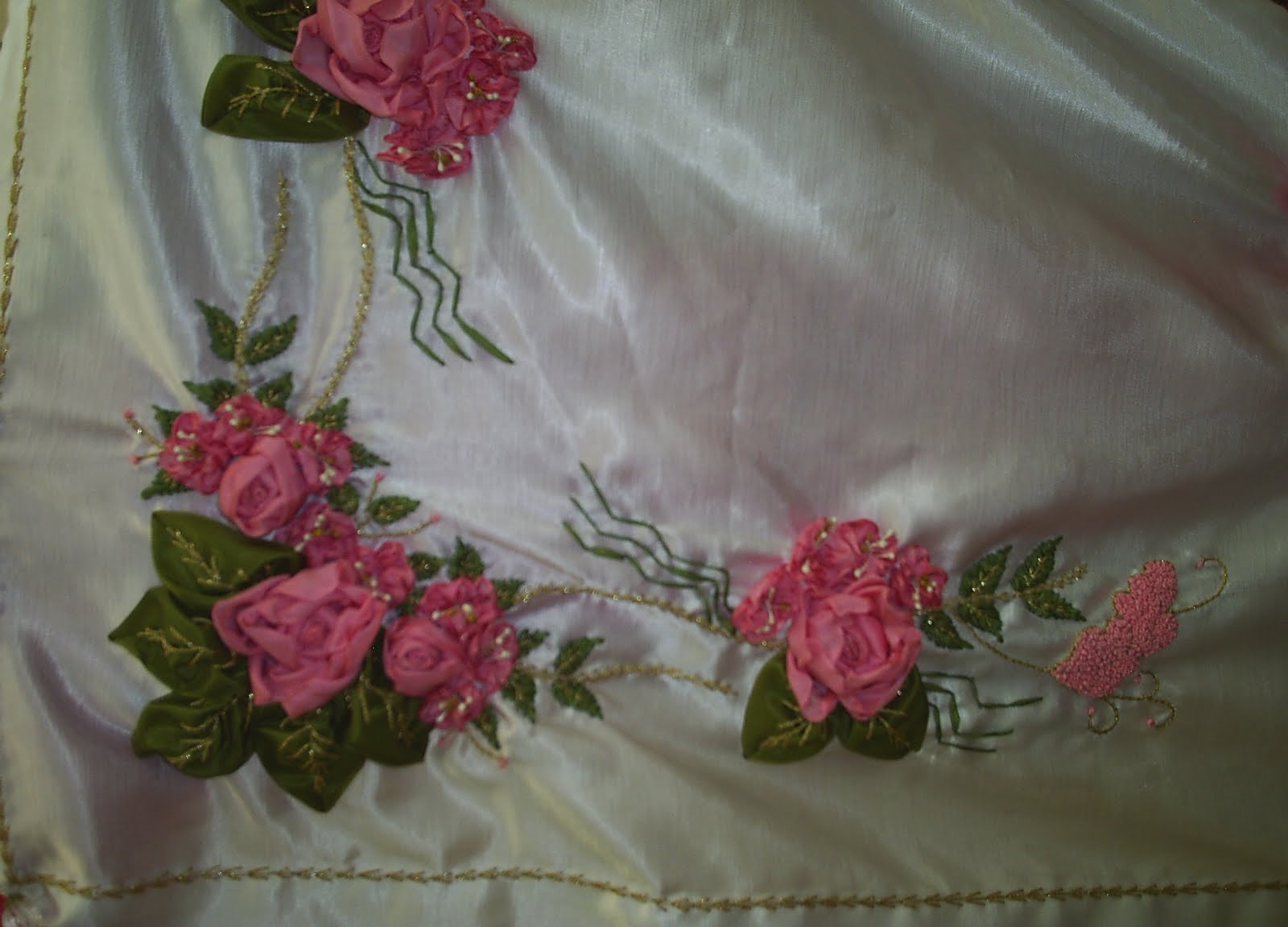 Gül her zaman en sevdiğim çiçek olmuştur kokusu ve rengiyle harika bir çiçektir.Ayrıca peygamber efendimizi hatırlatır .Kurdele nakışı çalışılmış bu bohçada gerçekten harika olmuş.Güller ve yapraklar telli kurdele ile çalışılmış.