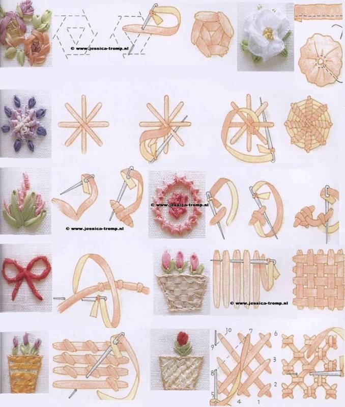Yine aşağıda kurdele nakışında gerekli teknikler bunlar. Öğrendikten sonra kolayca uygulayabilirsiniz.