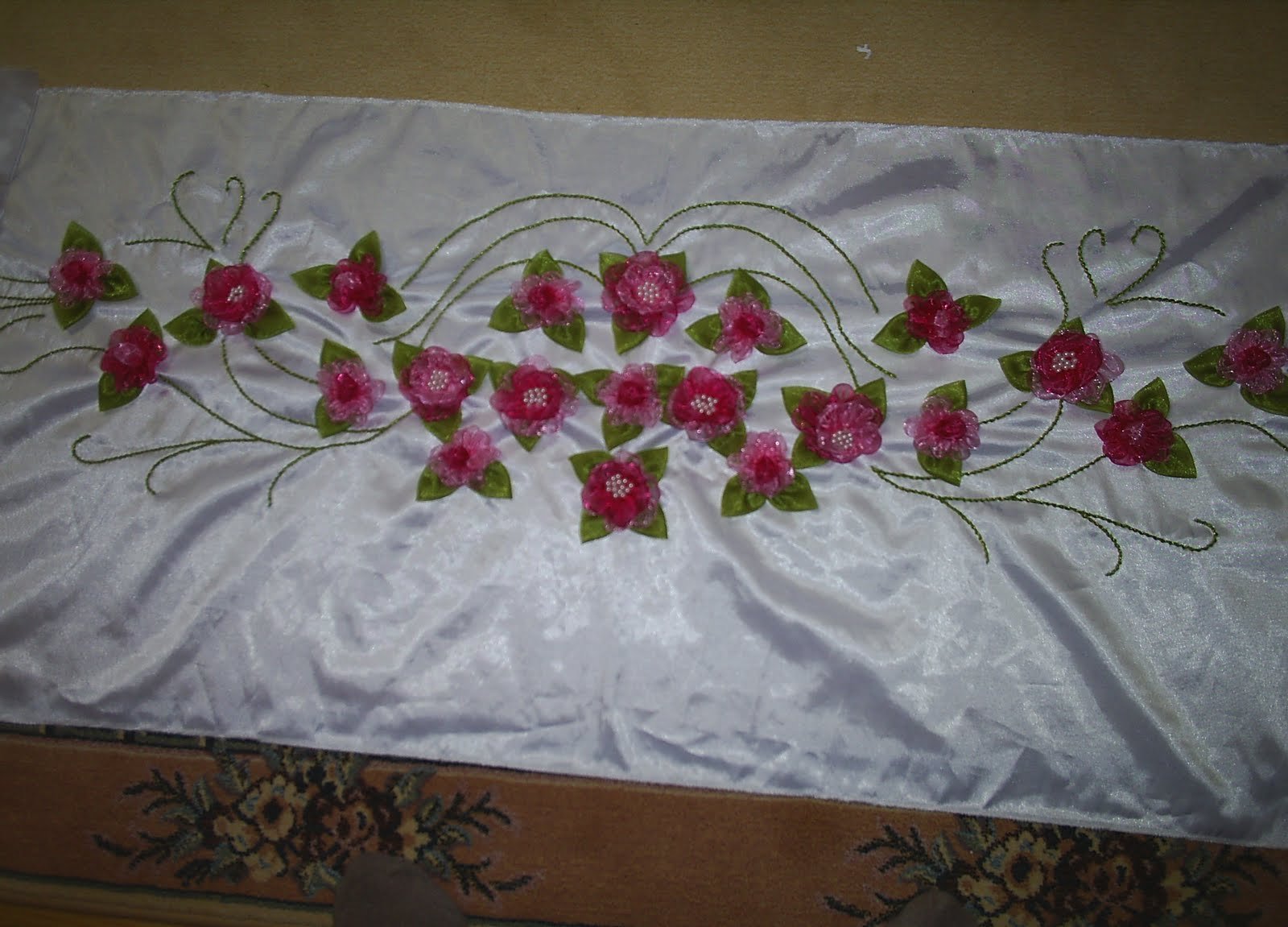 Organze kurdele ve organze kumaştan rengarenk bir pike takımı daha dikim aşamasında umarım dikildiğinde güzel birşey olur 🙂