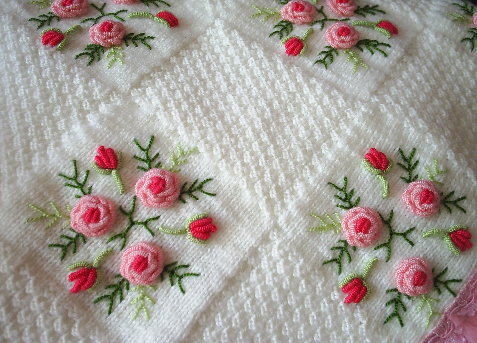 Sevgili arkadaşımın çok tatlı kızı bebek bekliyordu. Arkadaşım bebek için battaniye örmüş ve bana seni düşünerek ördüm sen işleyeceksin dedi 🙂