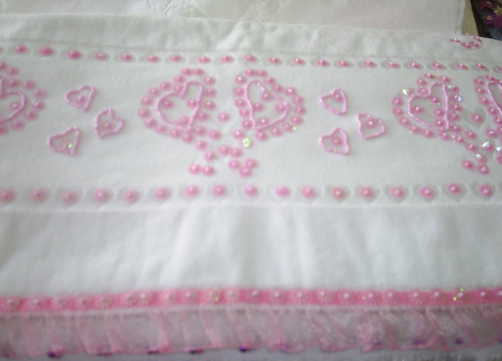 Renkli pul ve boncuklarla işlenmiş havlu kenarlarından bir demet. Havluların kendi desenleri üzerine renkli pul ve boncuklar dikilerek desenler yeniden oluşturuluyor. Hem kolay hem çok güzel bir teknik. Yapılışı çabuk olsun ama güzel görünsün diyenler için :))
