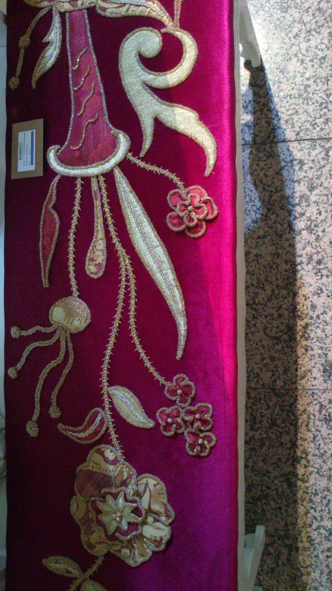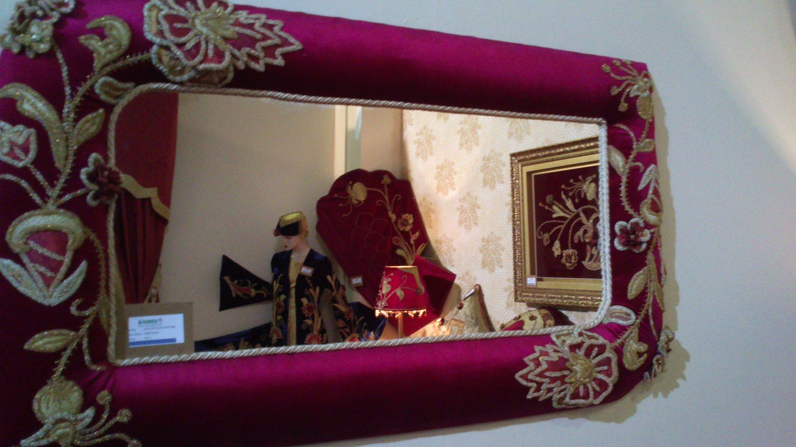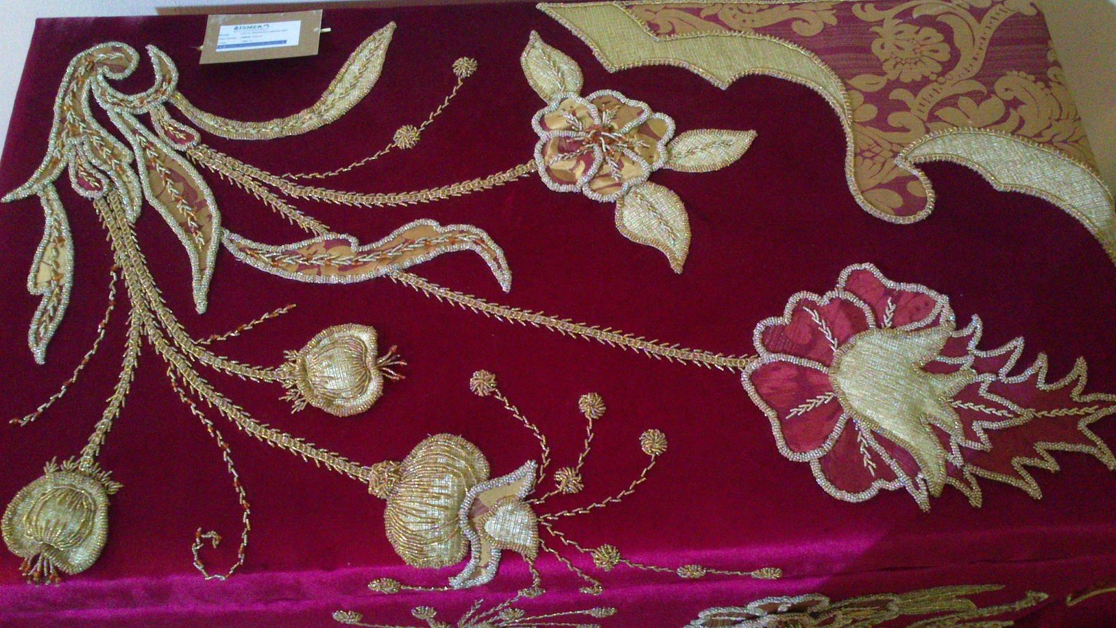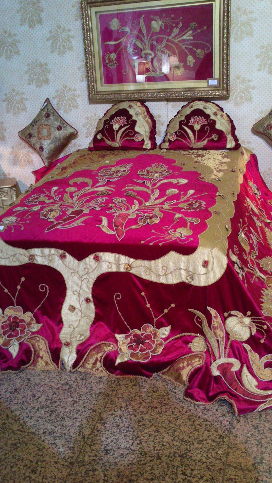 Diğer postta yayınladığımız Muhteşem Bir Yatak Örtüsüne devam ediyoruz 🙂 Harika çalışılmış bir sandık ve ayna var yatak örtüsünün desenlerinden oluşan. Güzel bir tablo yapılmış aynı desenlerden. Prenseslere layık çok hoş bir puf vardı bayıldığım, yalnız onun üzerine oturmaya nasıl kıyılabilir ki. Aplikenin, üç boyutlu nakışın, boncuk işinin ve farklı el nakışı tekniklerinin birlikte kullanıldığı bu harika yatak örtüsünü İSMEK sergisinde resimledim bu yıl.